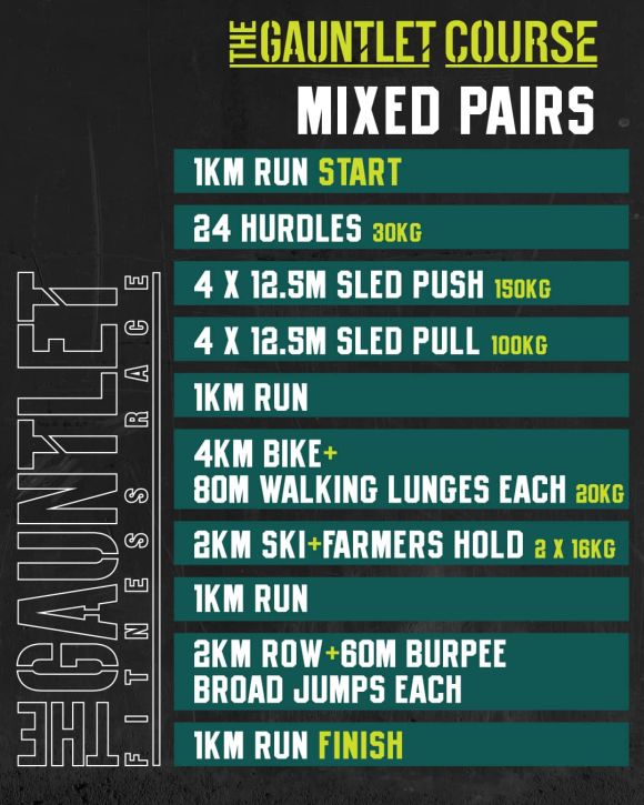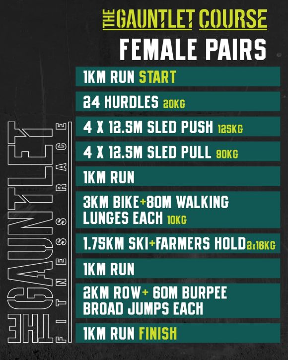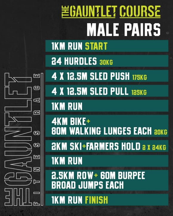 The Pairs divisions are designed so that both athletes have to work for each other and together to complete the race. Unlike other events where one partner can carry all the stations and the other just runs, The Gauntlet Pairs format is built to make sure both athletes are genuinely contributing throughout.