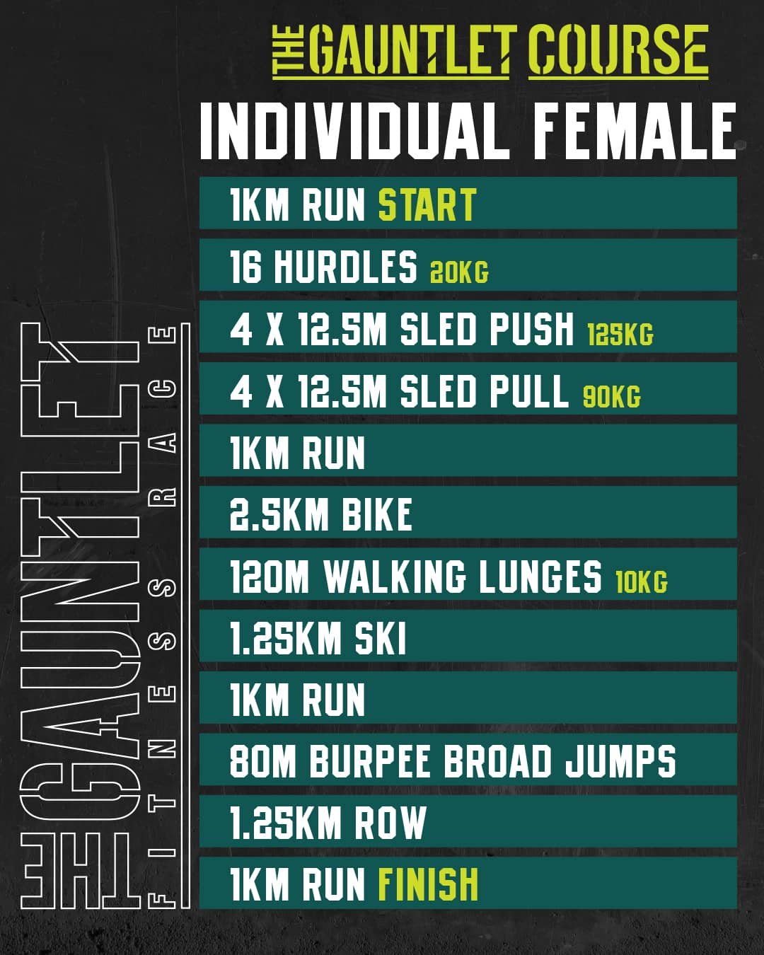 The Gauntlet has been designed as the ultimate test for the hybrid athlete. Born from a simple idea – that a fitness race should be about more than just running – it was built to give equal weight to the stations. No run, station, run, station formula here. The ergs, the sleds, the lunges – they matter just as much as the kilometres.